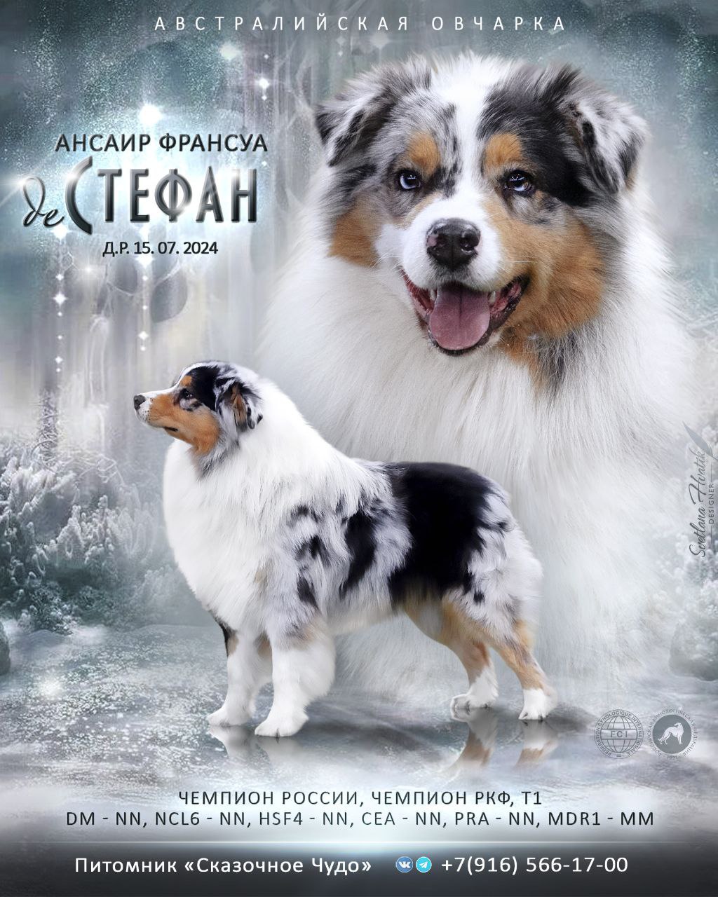 Юный Чемпион России, Беларуси; Чемпион России, Беларуси, Чехии, Греции, Чемпион НКП; 13 X CACIB.